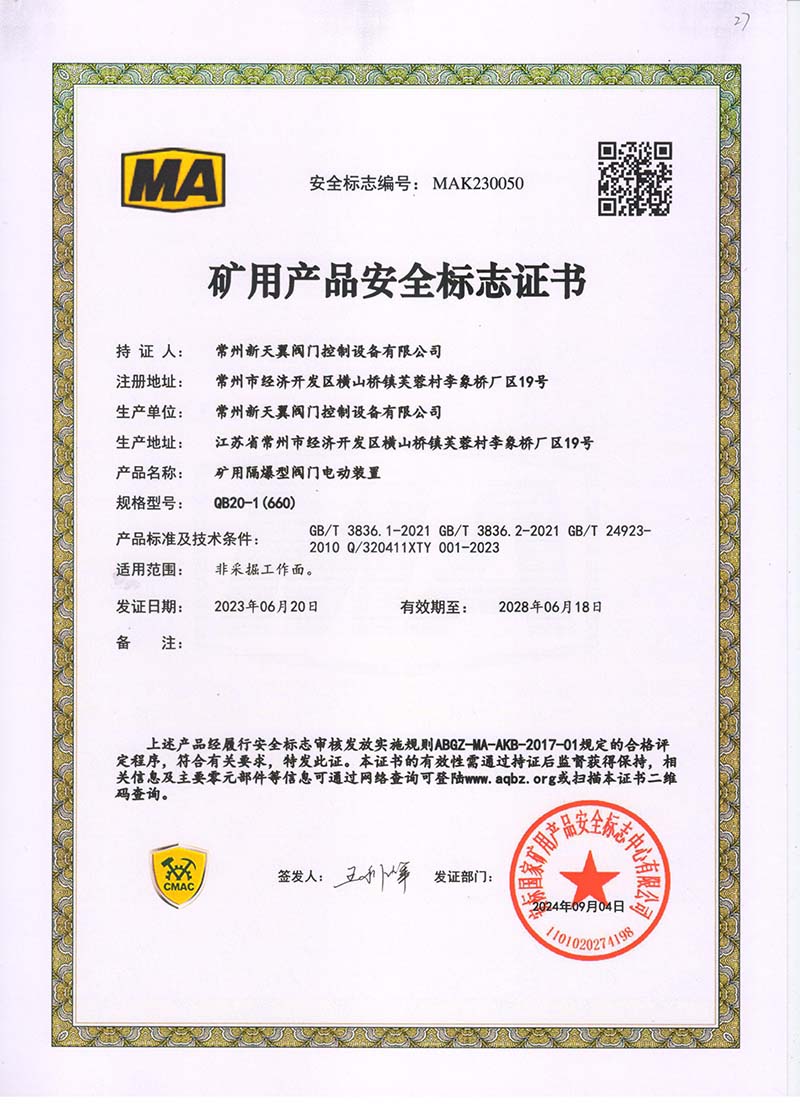 礦用隔爆QB127V中國國家強制性產品認證證書105.2